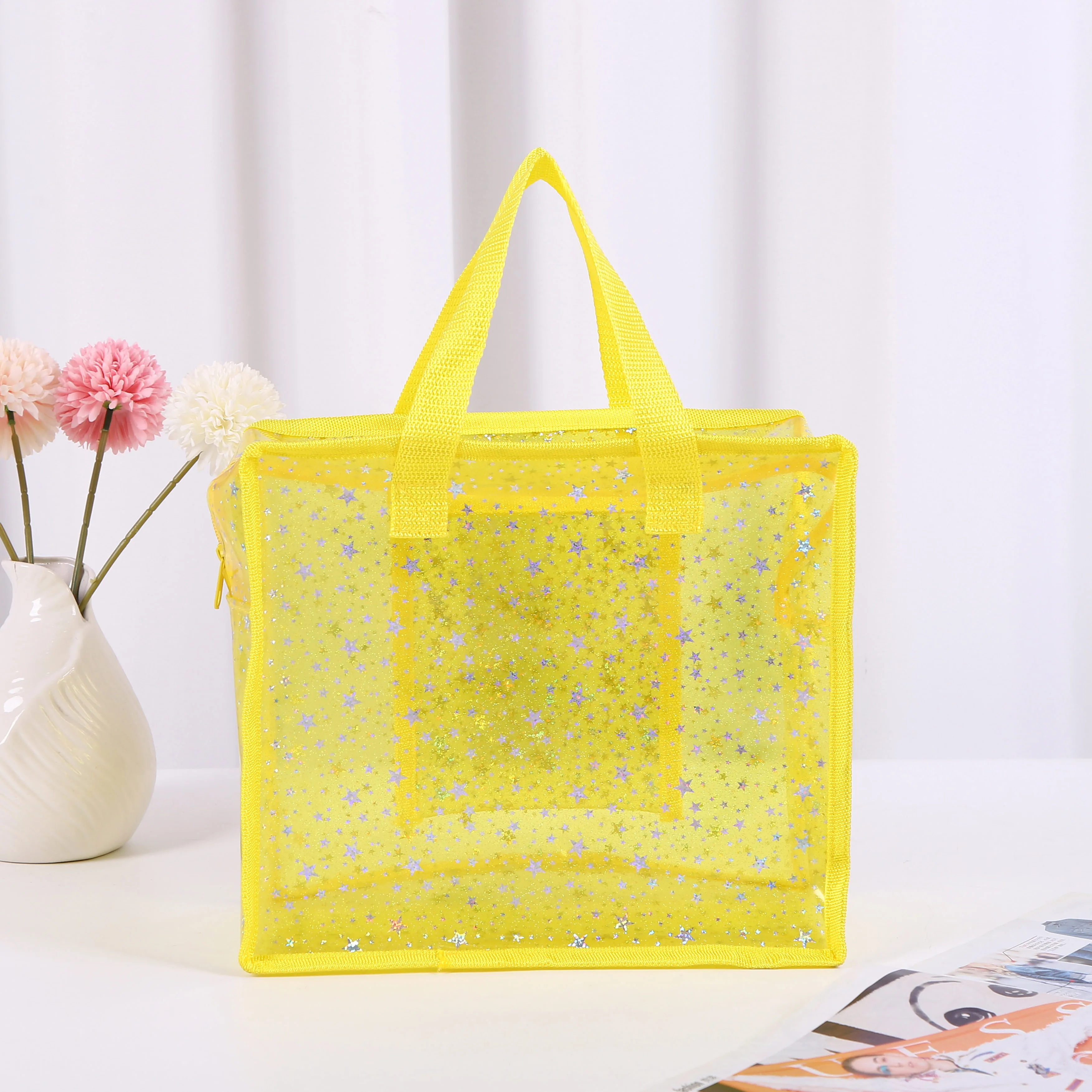 Custom Logo Transparent PVC TPU Pouch Holographic Large Capacity Waterproof Travel Makeup Bag for Cosmetic Storage