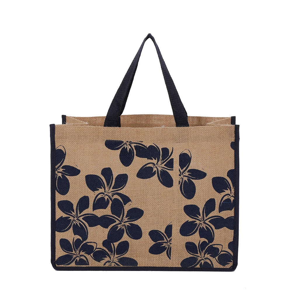 Eco Friendly Laminated Jute Bag Burlap Reusable Linen Beach Bag Hessian Shopping Tote Bags With Custom Logo