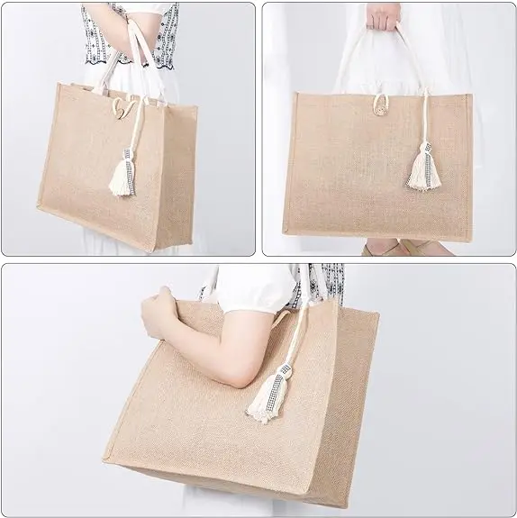 Wholesale Advertising Cheap Large Recycled Linen Hemp Burlap Shopping Tote Christmas Handmade Eco Cotton Jute Bag